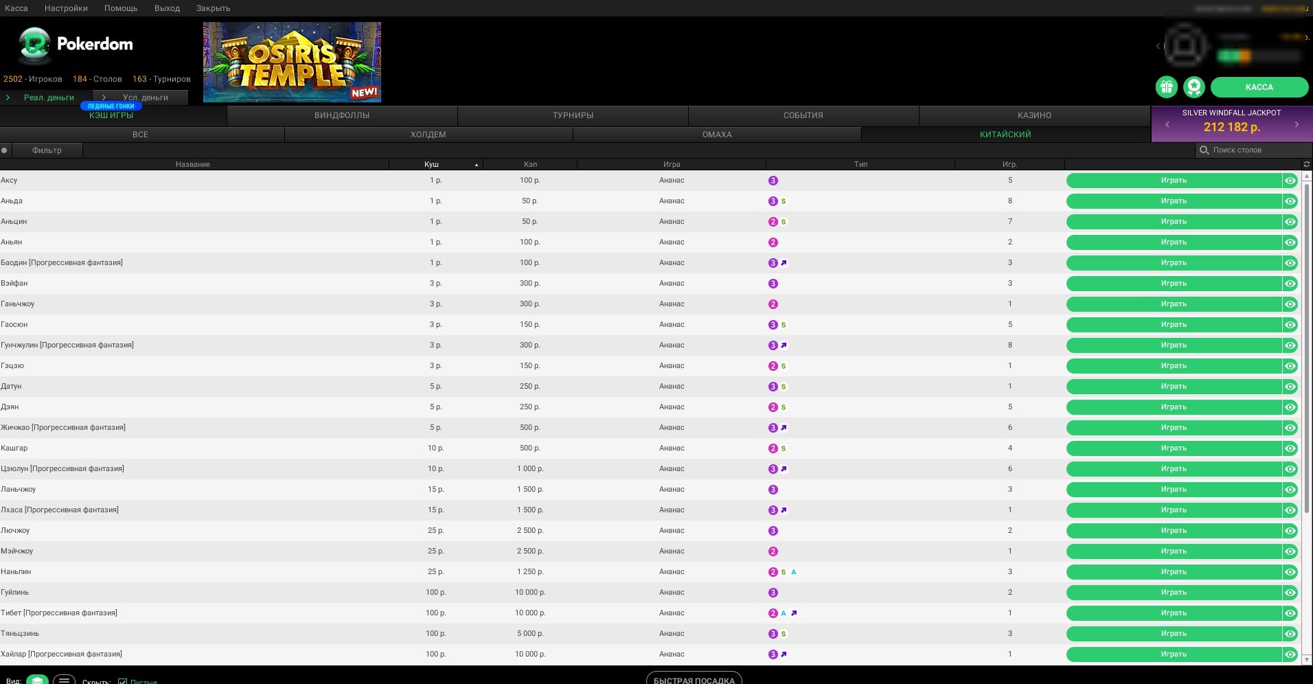 Кэш-столы китайского покера по низким ставкам