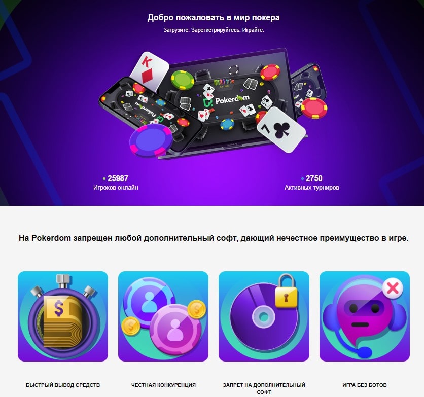 Главная страница официального сайта Покердом в разделе «Покер»